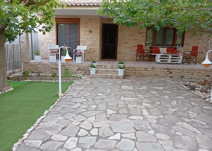 Athina'S House Pensionat med 1 sovrum, som ligger cirka 10 minuters bilresa från Blue Diving Center, har soldäck, solterrass och uteplats för gästerna. Villan med 1 badrum, som ligger ungefär 25 minuters gångavstånd från Néa Poteídaia, erbjuder Wi Fi och en parkering.